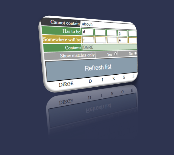 When your brain insn't braining but you really want to beat your sister at the Wordle game. This is an aid, a helper, or guide, at finding the words you wouldn't necessarily have heard of, it is clearly not for cheating.